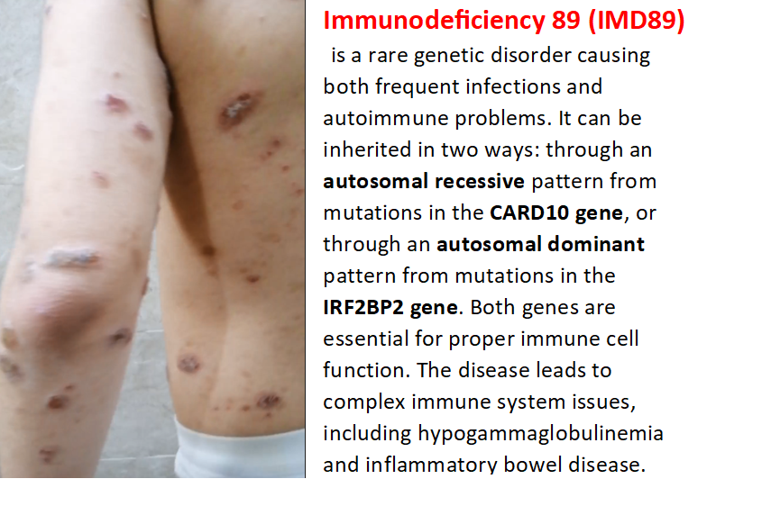 The clinical manifestations of IMD89 can include hypogammaglobulinemia, allergies, inflammatory bowel disease, and autoimmune cytopenias, reflecting the complex disruption of the immune system.