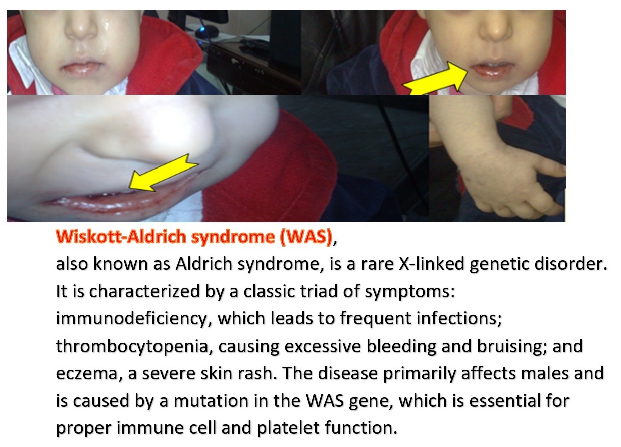 Wiskott-Aldrich syndrome (WAS) is a rare, inherited immunodeficiency disorder that affects primarily males. It's characterized by a triad of symptoms: low platelet count, which leads to bleeding and...